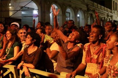 Los integrantes del grupo infantil Retoño, en saludo a la presentación de Silvio y sus invitados en la localidad, bailan Oshún, Yemayá, Changó, Obbatalá… Lo intenso del baile, la fuerza en las miradas, revela una forma de ser, algo que fluye en la gente de este lugar, que les corre en el cuerpo como la sangre, y que en los niños es más visible tal vez, seguramente más sincero.