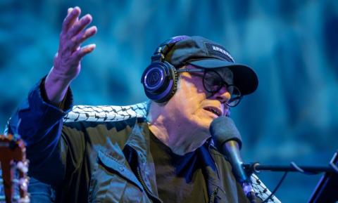 Melodías viejas y nuevas, clásicos revisitados con mágicos detalles y una entereza musical que Silvio Rodríguez expandió en su notable y conocida banda, con la cual se recostó en una exquisita reelaboración de la música cubana, del son a la canción, de la rumba al filin y la salsa, de Leo Brouwer a la vieja y nueva trova, de Frank Fernández y Chucho Valdés a Omara Portuondo y Juana Bacallao, a quien nombró junto a Celia Cruz, tal vez un inesperado homenaje en la incorrección política –varios murmuraron en la platea–, otra huella del irreverente cantautor, con los pies en su tierra y su reconocido pensamiento de izquierda pero nunca atado a la etiqueta de las banderas políticas ni a la lectura maniquea de cualquier gobierno ni sistema ideológico, y no casualmente, mientras su público cantaba por Palestina sacó de la galera el poema “Halt!” (publicado en 1979) de quien consideró como el mejor poeta de su generación, Luis Rogerio Nogueras, y lo recitó de forma completa. “Recorro el camino que recorrieron cuatro millones de espectros/ Bajo mis botas, en la mustia, helada tarde de otoño/cruje dolorosamente la grava. Es Auschwitz, la fábrica de horror/ que la locura humana erigió a la gloria de la muerte/ Es Auschwitz, estigma en el rostro sufrido de nuestra época./ Y ante los edificios desiertos, ante las aceras electrificadas, ante los galpones que guardan toneladas de cabellera humana/ ante la herrumbrosa puerta del horno donde fueron incinerados padres e hijos, amigos de amigos desconocidos/ esposas, hermanos, niños que, en el último instante, envejecieron millones de años./ Pienso en ustedes, judíos de Jerusalem y Jericó, pienso en ustedes, hombres de la tierra de Sión, que estupefactos, desnudos, ateridos/ cantaron la hatikvah en las cámaras de gas;/ pienso en ustedes y en vuestro largo y doloroso camino/ desde las colinas de Judea hasta los campos de concentración del III Reich./ Pienso en ustedes y no acierto a comprender/ cómo olvidaron tan pronto el vaho del infierno”, dijo conmovido en la voz, algo ronca por momentos .