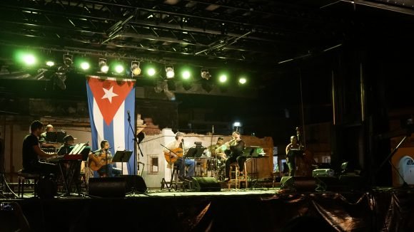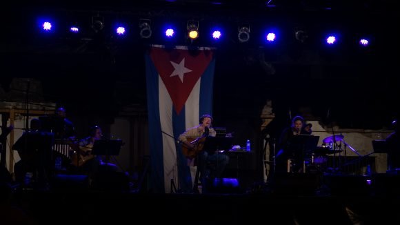 De inmediato, apareció el trovador en escena. Esta vez, acompañado de Jorge Aragón (piano), Jorge Reyes (contrabajo), Niurka González (flauta y clarinete), Rachid López (guitarra), Maykel Elizalde (tres), Emilio Vega (vibráfono y percusión) y Oliver Valdés (batería y percusión).