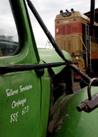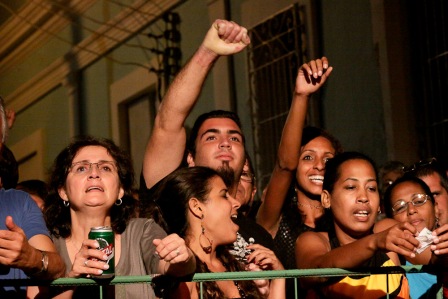 Entre una fábrica de ron y un taller ferroviario se montó el escenario; como siempre, con la bandera cubana en el fondo, inmensa esta vez.