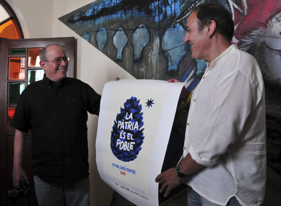 Hizo entrega de una serigrafía con el lema del Barnasants, en catalán, cuya traducción es: La patria es el pueblo.