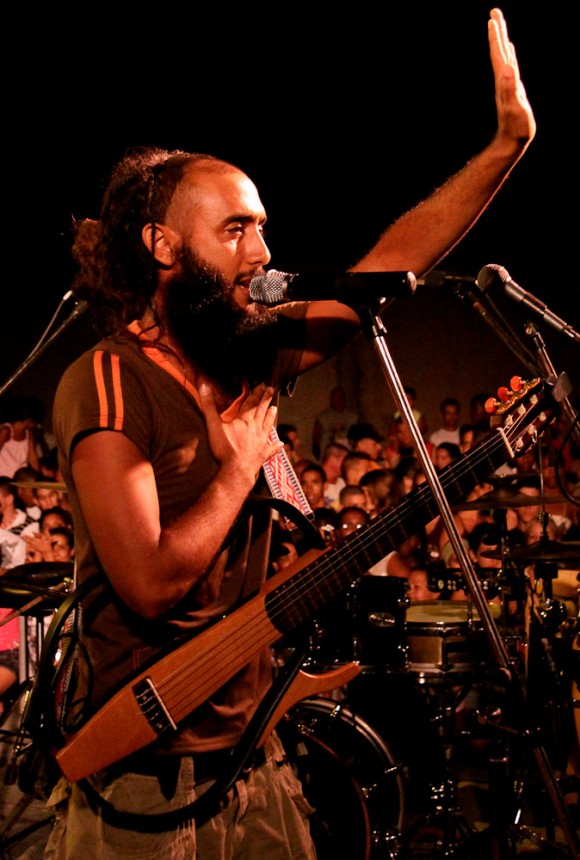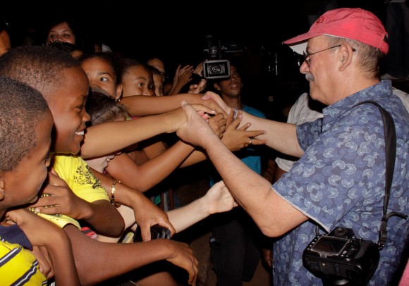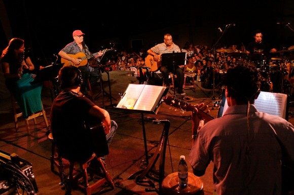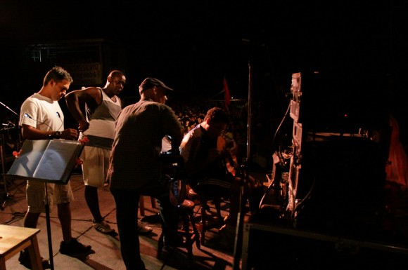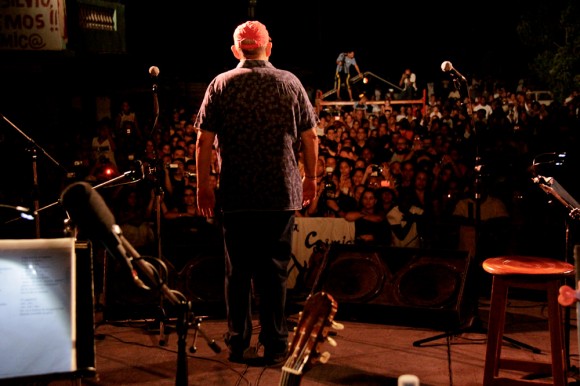 Es una casualidad grande que con lo mucho que acostumbra a llevar alguna linterna consigo, ahora no tenga ninguna, comenta cambiando el tema. Estoy cerca y lo escucho. Le ofrezco la luz de la mía. Lo veo y me pregunto si al cabo de 33 conciertos en barrios con características similares, la experiencia le reserva todavía espacio para el asombro, para la sorpresa. Me animo a compartirle la interrogante, y entre los acordes de su guitarra –que está afinando–, me cuenta: “Nosotros realmente empezamos un poco ciegos, y se nos han ido abriendo los ojos por el camino. Un poco ya sabemos de qué se trata; pero cada concierto lo hemos vivido como una experiencia diferente al resto. Los repertorios –aunque a veces han sido parecidos– han funcionado distinto en cada barrio. Cada lugar es único, y cada sitio al que llegamos es como un lugar virgen. Son tantas las sorpresas…” Y lo que ha sucedido hoy da crédito.