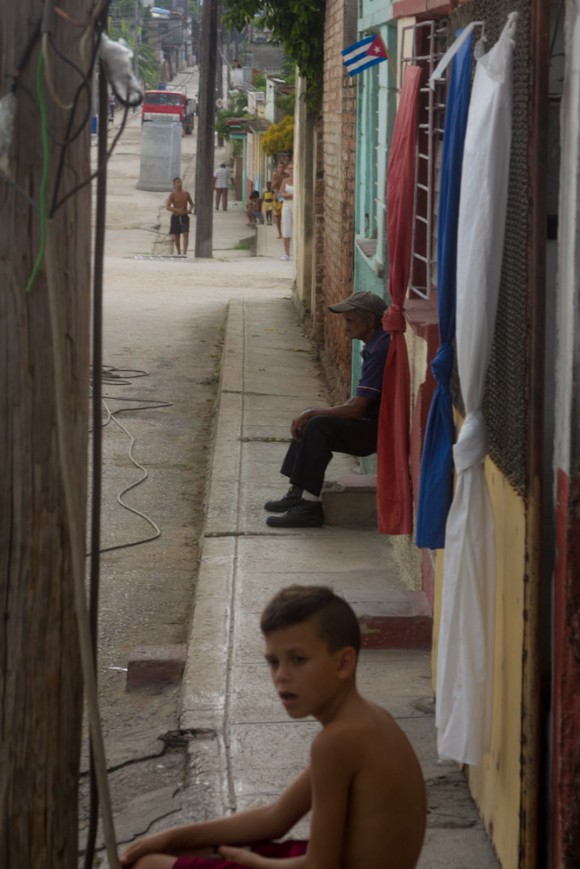Suerte que Silvio tiene su sombrero. María Regla, vecina del barrio, no pudo hacerle un obsequio más oportuno.