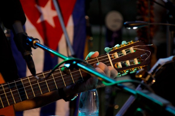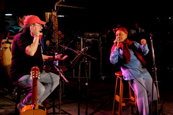 La vimos una hora antes del concierto, ya “contenta”, “curda”, “en nota”, discutiendo con alguien a unos metros de la tarima donde ensayaban los cuatro músicos que vienen con Omara. Entonces no reparé demasiado en ella. Pero una vez comenzado todo, era imposible no hacerlo: estaba en primera fila, cantando, gritando, gesticulando con exageración; provocando a su alrededor las veces risa, las veces disgusto. Poniendo a prueba paciencia, tolerancia, sentido del humor y del ridículo.