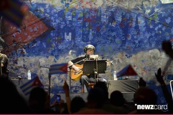 Arropado por los gritos de “Cuba”, “Cuba”, el trovador cubano, sin discursos, inició su presentación la noche del jueves con la canción Mujeres, seguida de En el claro de la luna.