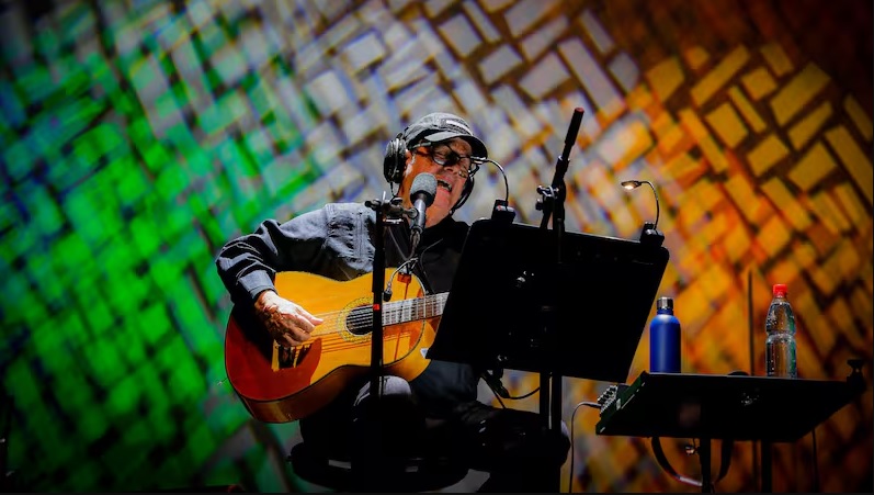 Luego, como primer tema de la jornada, llegó Alas de colibrí, parte de su catálogo de los años 90, plena era de búsqueda y reinvención, aunque sin perder el verso de bordes políticos: “Hoy me propongo fundar un partido de sueños”, dice su primera línea. Alegoría pura, Silvio Rodríguez en su léxico más pleno.