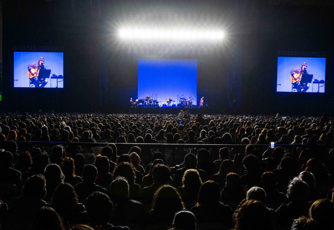 Esa noche en Lima —la número once de la gira latinoamericana— fueron precisamente sus canciones las que acompañaron a más de diez mil personas reunidas en el Multiespacio Costa 21, a metros del océano Pacífico, bajo una luna creciente que se asomaba frente a los acantilados del barrio limeño de San Miguel. Un escenario abierto, flanqueado por el rumor del mar y la brisa salada.