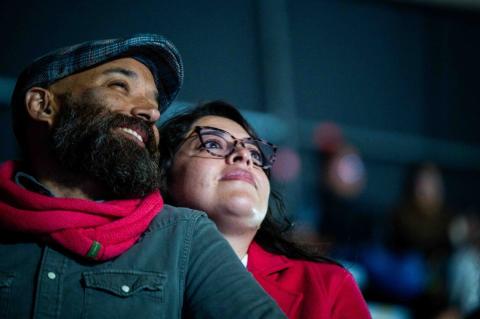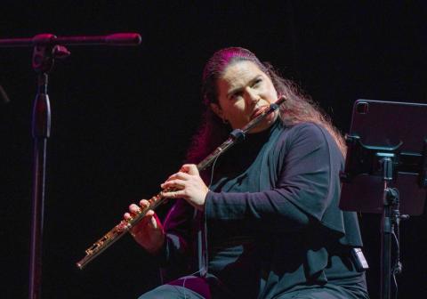 La noche avanzó con Más porvenir, dedicada a Pepe Mujica y Lucía Topolansky, y continuó con Eva, Canción del elegido, Quién fuera y Te amaré. En otro de los pasajes más intensos, recitó el poema “Halt!” de su amigo Luis Rogelio Nogueras, para enlazar luego con La era está pariendo un corazón, en un puente que unió la poesía y la resistencia.