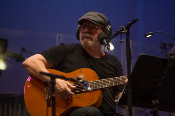 "Soy embutido de ángel y bestia. ¿De dónde creen que lo robé? De Nicanor Parra", aseguró riendo el cantautor después de cantar Óleo de mujer con sombrero.