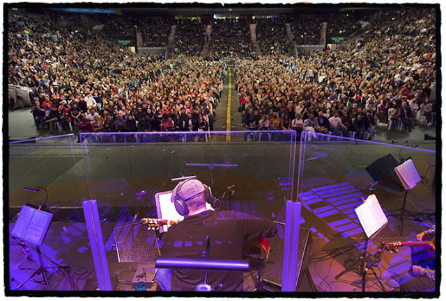 La orquesta arrancó con Una canción de amor esta noche, Tu soledad me abriga la garganta y Tonada del albedrío, para después encarar la tetralogía de Exposición de mujer con sombrero: Dibujo de mujer con sombrero, Óleo de mujer con sombrero, Detalle de mujer con sombrero y Mujer sin sombrero. Él, en el centro de las tablas, tranquilo y veterano, rodeado por sus músicos y con una escenografía austera, la adecuada, hacía sonar su voz y sus cuerdas de forma cristalina y cercana entre los ecos de los coros del público (quizás demasiado constantes, todo sea dicho).
